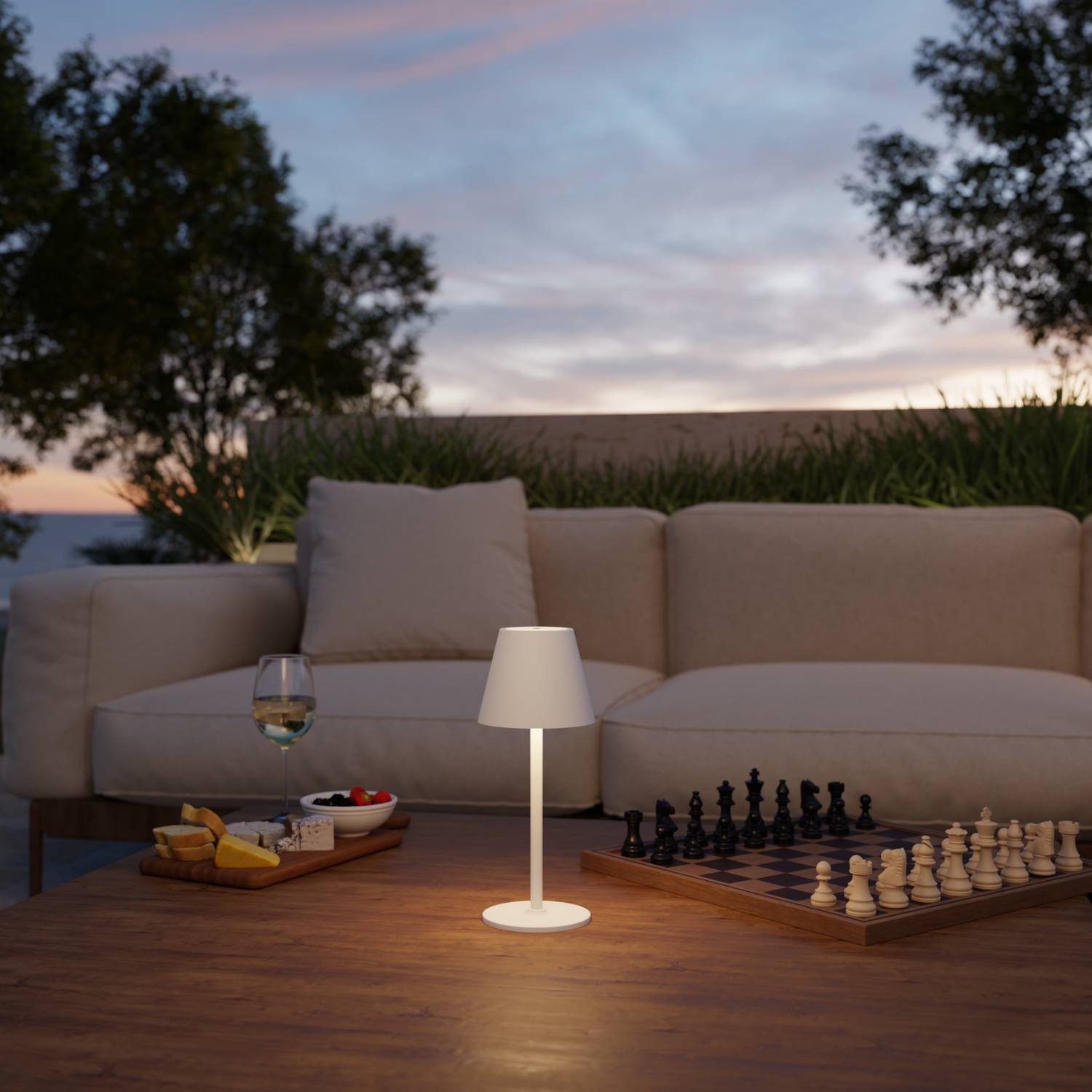 Geniet van eindeloze, warme zomeravonden: met onze Velaris tafellamp geef je je buitenruimte een gezellige verlichting die uitnodigt om lekker te ontspannen. Het warmwitte licht met 2700 K creëert de perfecte sfeer om een warme zomerdag mee af te sluiten en biedt voldoende licht om te kaarten met vrienden en te ontspannen met een koel drankje.