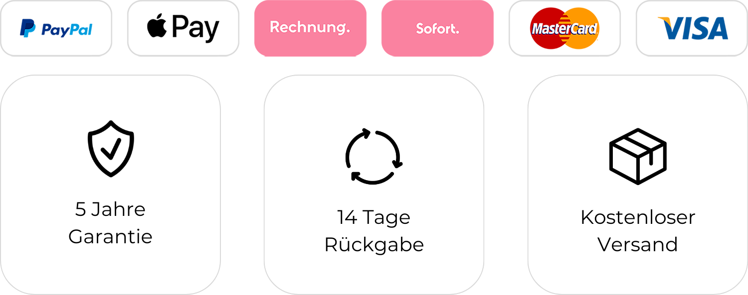 Wir verschicken alle Bestellungen von unserem Lager in Münster, NRW. Der Versand erfolgt durch unsere Partner DHL, DPD & GLS. Bitte beachte die auf der Produktseite angegebenen Lieferzeiten.